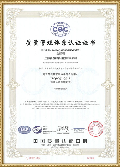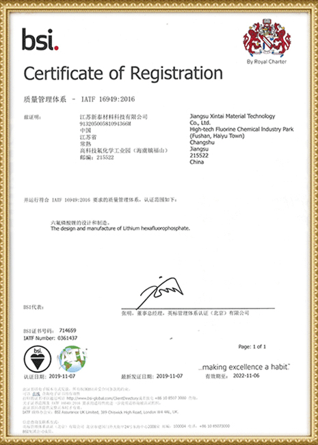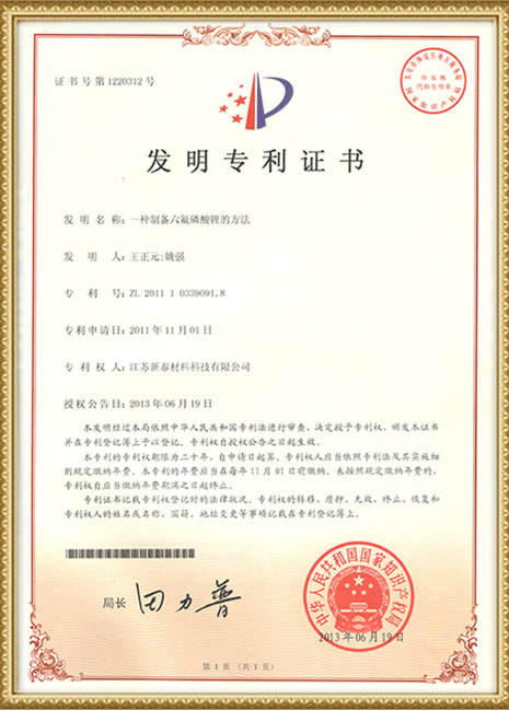 2016年3月,與常州大學開展產學研合作,簽訂了總金額為3000萬元的“六氟磷酸鋰的工藝優(yōu)化、評價及應用研究”技術開發(fā)(委托)合同,并建立“江蘇新泰常大鋰電池材料研究院”。